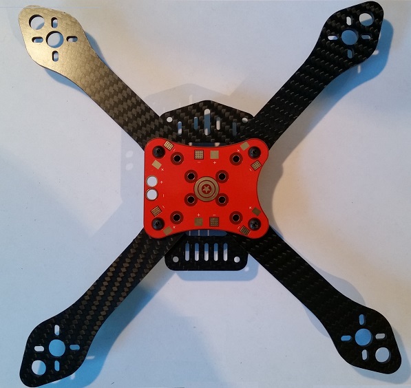 I wanted something compact but not so small that installing the electronics would require me to work under a microscope with tweezers. The frame should also have enough space to allow me to add an action camera for making some HD videos. Keeping the frame on the medium to small side (at least for racing drones) also meant I could get away with smaller and thus lower cost motors and speed controllers. These parts could then be upgraded later if I outgrew them, or more probably after destroying them in a crash. Choosing a frame made from individual parts also seemed like the more logical option since a broken arm could easily be repaired in a few minutes. Single construction or uni-body frames are lighter since they do not require extra screws and parts to attach the different sections, but would require a complete rebuild after a serious crash.