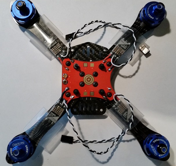 When choosing the Electronic Speed Controllers (ESC’s) for my new drone, the biggest question was what current rating do I use? Lower rated controllers are cheaper but might overheat and burn out if the motors asks for more than they can deliver. Choosing higher rated controller would obviously be safer but they will be a bit heavier and also more expensive. The motor specifications indicated that at maximum power, the motors could draw up to 27.6A! The thing is unless you are a professional racer, I doubt you would hit full power very often and when you do it would be short bursts. My guess is that the drone would hover somewhere between 30% and 40% of the full power rating (assuming it weighs about 900g). Most of the flying would most likely happen between 40% and 60% giving 27.6A x 0.6 = 16.56A, so a 20A ESC should be sufficient. Just to make sure I also Googled around the internet and found a couple of people reporting that 20A controllers ran fine on their 220 class drones with similar (Racestar) motors and 5 inch props. These ratings are for continuous current and often these ESC can handle burst currents more than double the rated continuous current. UnmannedTech stocked 25A controllers carrying the same Chaos name as their motors and runs the popular BLHeli_S firmware. Another nice touch was that these controllers actually supports D-Shot which means the flight controller can use the newer digital protocol to command them. At 23 Pounds for a set of 4 I also added them to my order: